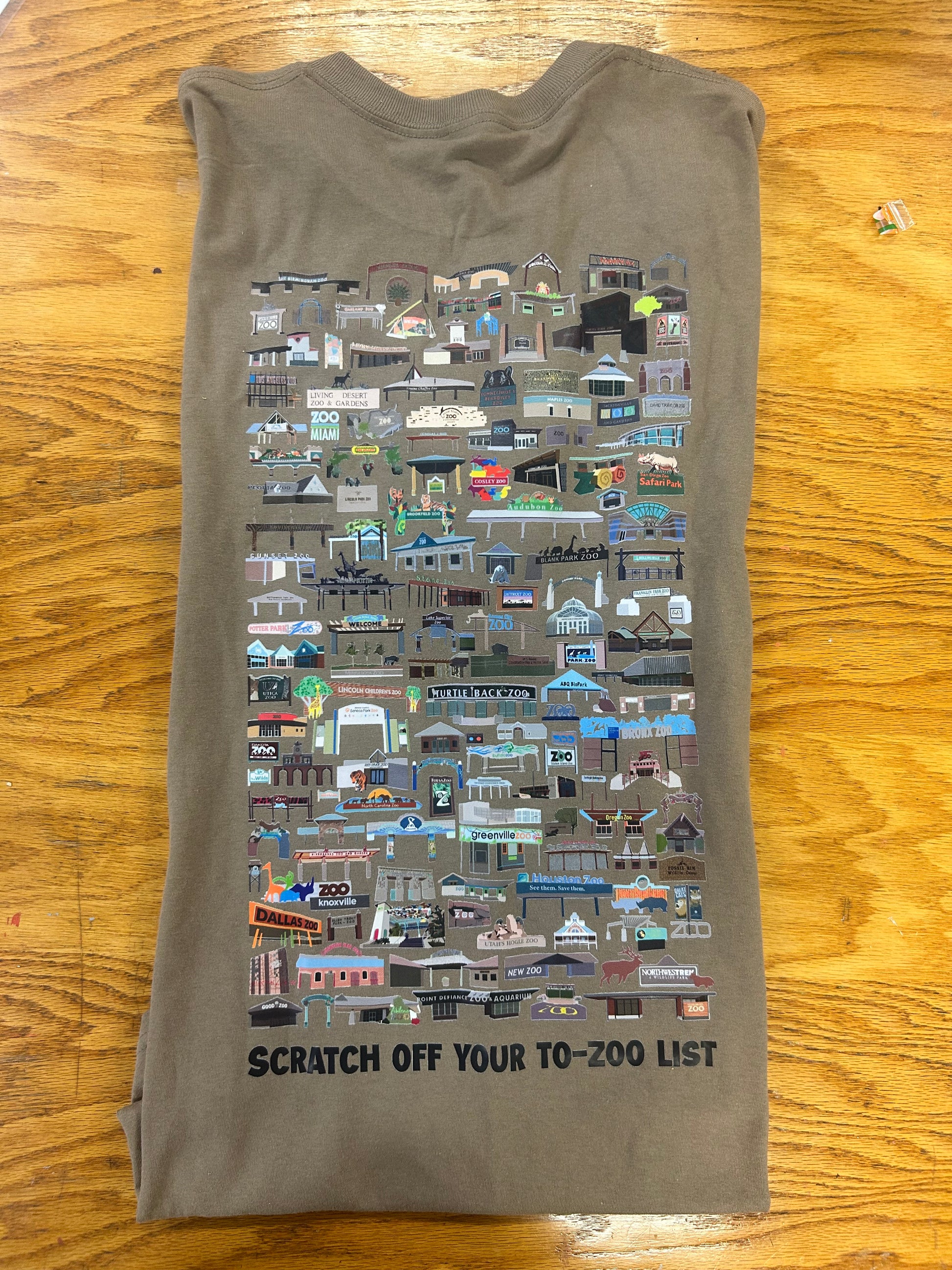 A soft T-shirt featuring all the zoos from the book on the back and my logo on the front. Comes in a variety of UNISEX sizes and colors